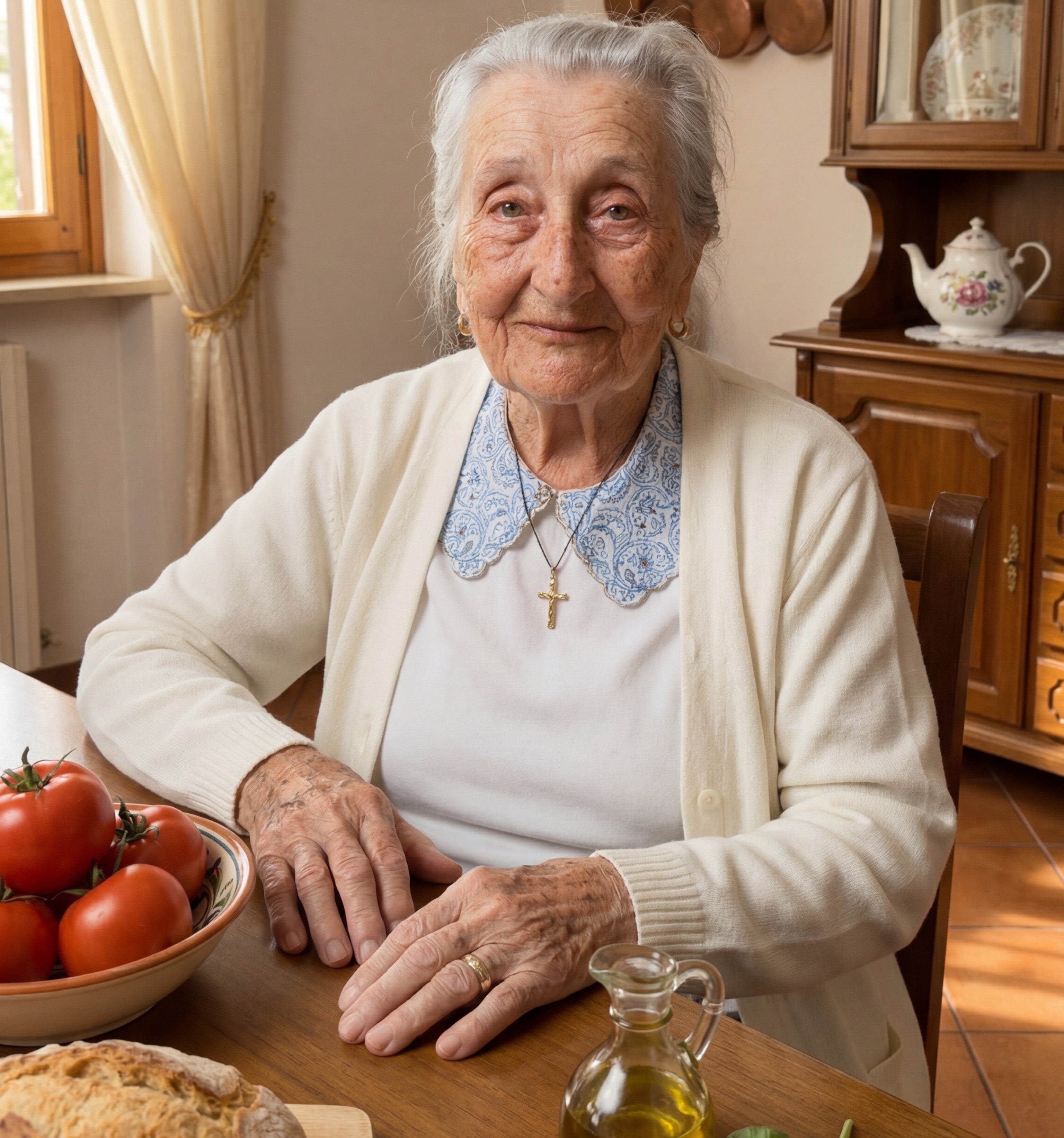 Nonna Rosa è nata nel 1949 in un piccolo paese della Toscana, durante anni difficili del dopoguerra. Ha imparato a impastare il pane prima ancora di andare a scuola, ha sposato suo marito Antonio a vent'anni, ha cresciuto tre figli e oggi ha cinque nipoti.